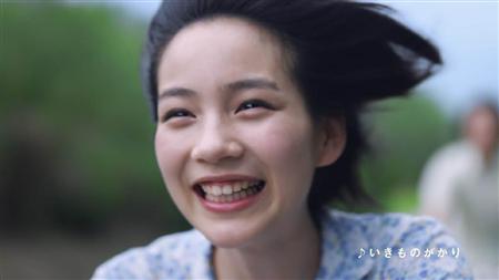 無邪気な笑顔で「わー、映画みたーい!」と声を上げる能年さん。後ろを走る先輩に「どんな映画?」と聞かれると、自転車を止めてカルピスウォーターを一口。そして「男の子がね、告白するの!」と一際大きな声で叫ぶ。