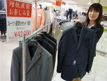 西武池袋本店(東京都豊島区)では27日、4月1日に発売する「春の福袋」の袋詰め作業が始まった。紳士シャツ7枚(5万円相当)の福袋(1万800円)など250種1万点を用意。担当者は「来店してもらい、増税後の消費意欲を刺激する」と意気込む。