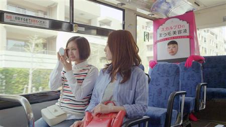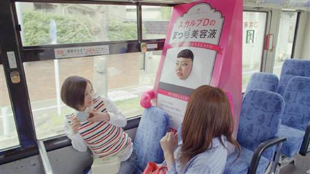 舞台はバスの車内。女友達と並んで座る近藤さんがコンパクトをのぞき込み、「あ~、まつ毛が~」と顔をしかめて嘆く。