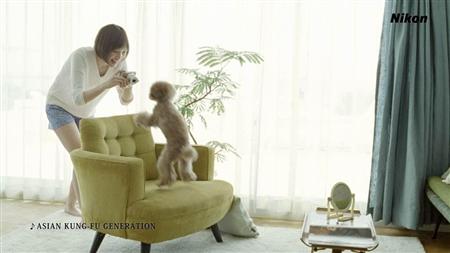 CMは、部屋の中でくつろぎながら大好きな小物などを夢中で撮影し、さらに愛犬ガブちゃんにもカメラを向けると、どれもうまく撮影ができ、「すごいな、ニコン」とつぶやく屋内編と、海に出掛けて、強い海風が吹く中で、感性のままにシャッターを切っていく屋外編の2本がオンエアされている。屋外編では、夢中になるあまり、冷たい砂浜でつまずくハプニングもあったが、撮影の合間に自分で撮った写真をカメラで見て「うれしくなっちゃう。ニヤニヤしちゃう」と満足そうに腕前を確かめていたという。