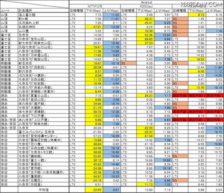 iPhone/Android全体平均(「RBBTODAY」7月28日掲載から) NTTドコモが今年も富士山頂にアンテナを設置した。富士山での通信スピード調査ではau、ソフトバンクに対して優位性が示された。その結果は、調査を実施しては試行錯誤を繰り返し、改善点を見つけてきた真摯な姿勢と地道な努力に裏付けられたものだ。(長浜明宏)