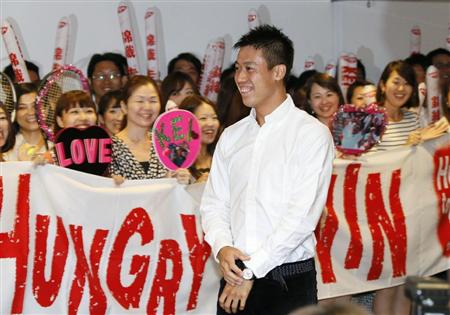 帰国報告会では、錦織選手は「今回は準優勝でしたが、次回は優勝を報告できるようにがんばります」と挨拶した。