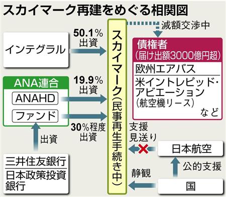 一方、インテグラルもスカイマークの経営破綻直後から資金面で支援してきたとの自負から、「過半出資は譲れない一線」とこだわった。再生計画案の提出期限が5月29日に迫る中、最後は監督委員が取りまとめに動いた。