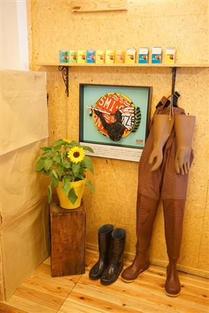 新商品と一緒に渡された携帯灰皿は使わなくなったソフトパッケージを再利用したもの。納屋の木材も廃材や間伐材を使用し、ロゴをかたどったアート作品の材料はナンバープレート。クルーの制服の素材はオーガニックコットンだ。