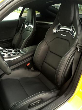 目が覚めるほど鮮やかな「AMGソーラービーム(120万円)」という特別塗装色を纏ったロングノーズ&ショートデッキのボディは、継ぎ目の少ない流麗な曲線で構成されている。
