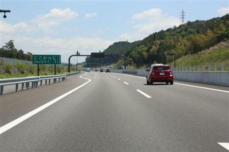 下り暫定2車線、上り3車線の65KP付近。ちょうど下り線にオービス(LHシステム)が設置されていますが、このままなら下り100km/hで変更なし、上りは120km/hの最高速度区間になることに…。