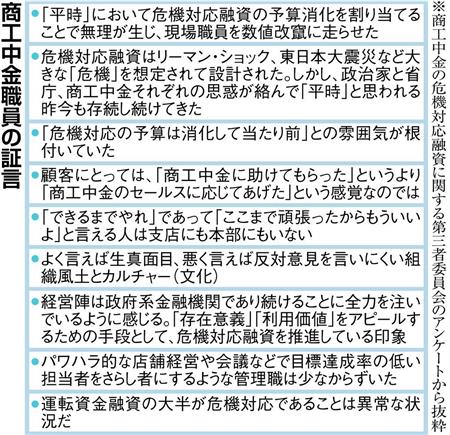 更新政府の「危機対応融資制度」を悪用した不正行為が、ほぼ全店で確認された政府系金融機関の商工中金。政府は商工中金のあり方について議論する有識者検討会を11月17日に発足させた。年内にも結論をまとめる予定だが、資金需要が乏しい中、不正によって生きながらえた組織は無駄も多く、再生は相当な「痛み」を伴うものになりそうだ。