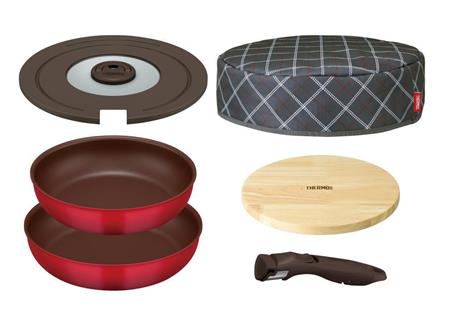 フライパンの内側は陶器をイメージしたブラウンカラーを採用。フライパンごとそのまま食卓にも出せるので、熱々の料理が味わえるという。ラインアップは、内径26と28センチのフライパンと専用取っ手、専用の蓋、保温カバーなどをセットにした「6点セット」(2万円)と、単品の内径26センチ(4500円)、28センチ(5000円)、専用取っ手(3000円)、専用フタ(3500円)、保温カバー(木製プレート付き、4500円)で展開する。いずれも税別価格。2月1日発売。