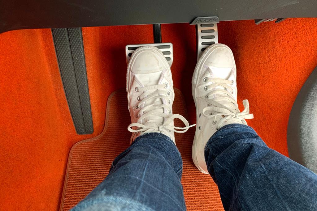 日常のブレーキングは右足でこなせば不都合はない。だけど、たとえば駐車場などの小さな段差を乗り越える場合に、左足ブレーキは役立つことがある。小さな段差を乗り越えたすぐ先に障害物があるような場面では、確実に左足ブレーキが有効だ。