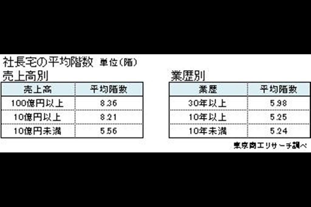 華やかなイメージの社長。タワーマンションなどでも高層階に住んでいるとみられがちだが、実際はどうなのだろうか。東京商工リサーチの調査では、社長宅の平均階数は5.35階と意外にも“地に足をつけて”暮らしていることがわかった。
