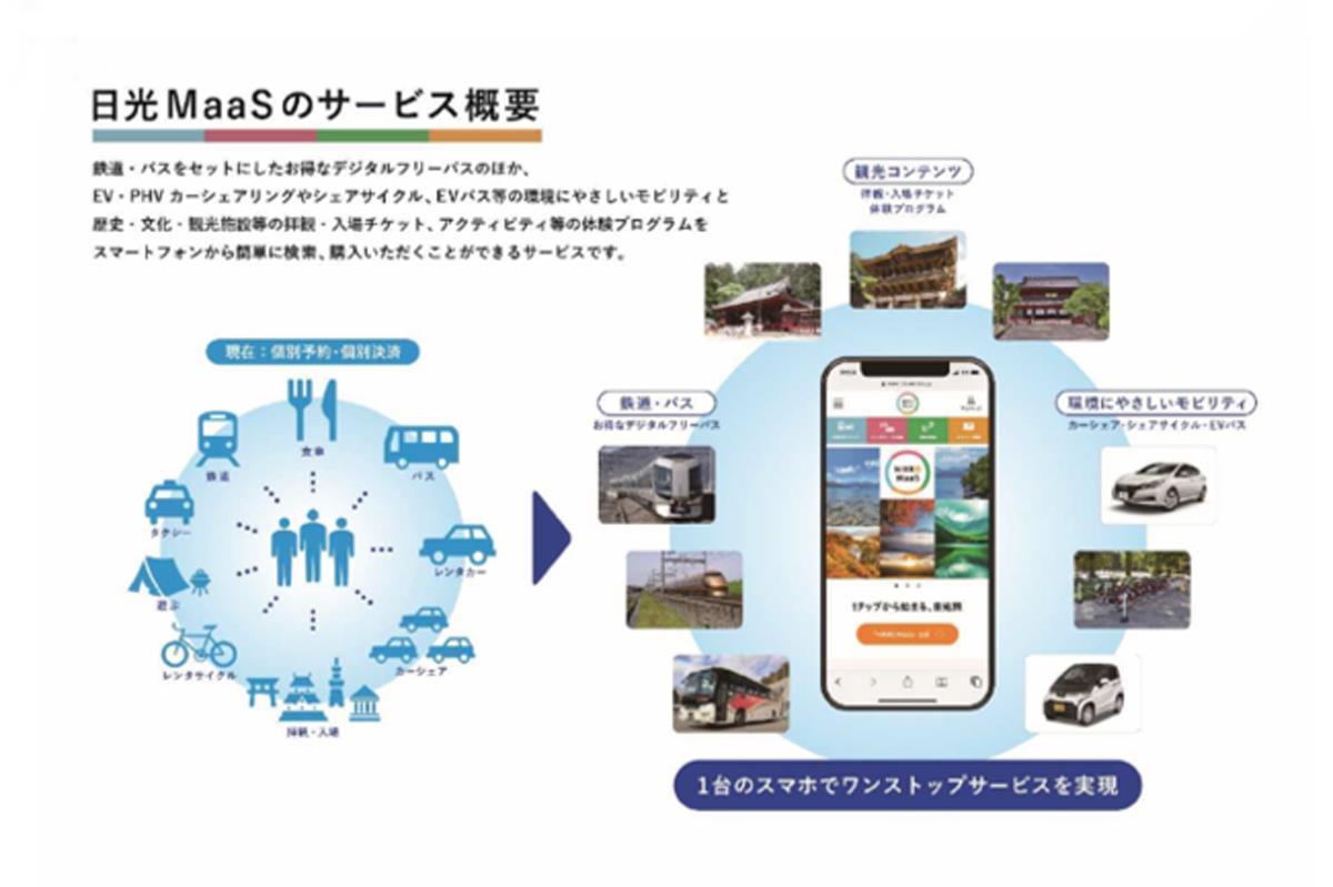 観光地に集中するマイカーによる環境負荷などの問題をめぐり、栃木県や東武鉄道などが今秋、栃木県の日光エリアで複数の移動手段と観光要素を組み合わせた「環境配慮型・観光MaaS(Mobility as a Service)」を全国に先駆けて導入する。鉄道とバスをセットにした、スマートフォンなどのデジタル端末で使える乗り降り自由の「フリーパス」を販売するほか、電気自動車(EV)を中心とするカーシェアリングやシェアサイクルなど環境に配慮したモビリティを移動ニーズに合わせて利用しやすくする。