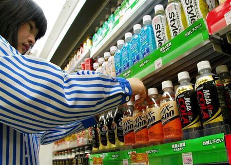 都内のコンビニエンスストアに並ぶ特定保健用食品の各種炭酸飲料=東京都品川区
