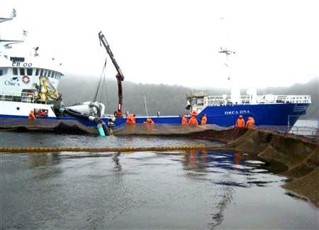 三井物産が手を組むチリのサケ養殖大手マルチエキスポートの水揚げ現場