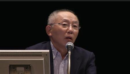 ソフトバンク株主総会で発言する社外取締役の柳井正ファーストリテイリング会長兼社長 (動画配信サービス「Ustream」より)