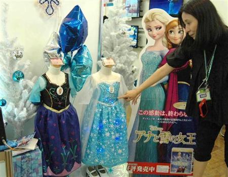 「クリスマスおもちゃ見本市」に出展したタカラトミーのブース。ディズニー映画「アナと雪の女王」になりきるドレスで商戦が始まった=3日、東京都港区