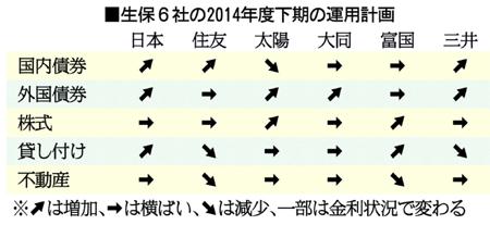生保6社の2014年度下期の運用計画