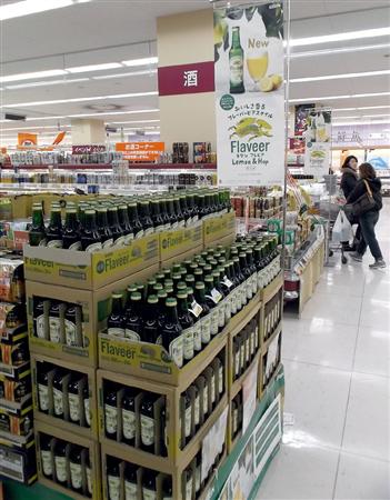 売れ行き好調で大陳列されている「キリン フレビア」=イトーヨーカ堂葛西店