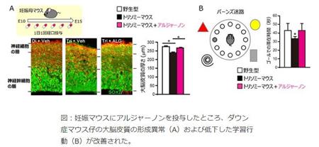 研究グループによれば、ダウン症のマウスがまだ胎内にいるとき、母マウスを通じてアルジャーノンを投与したところ、大脳皮質の変化や学習行動低下などの症状を改善できたという。