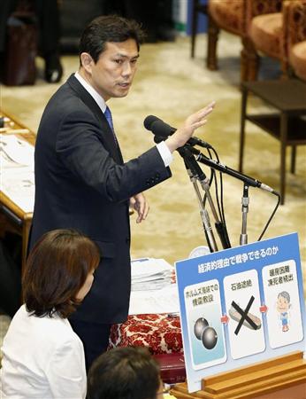5月28日、衆院平和安全法制特別委で質問する民主党の後藤祐一氏=国会