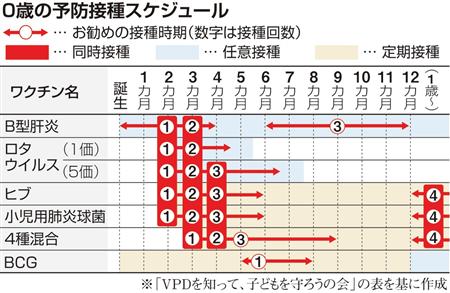 薗部理事長は「多くのワクチンをタイミングよく打つためには最初が肝心。初めてのワクチンを生後2カ月から接種するため、出産前から準備しておくといい。赤ちゃんの体調によっては受けられないこともあるので、かかりつけ医とよく相談してほしい」と話している。(平沢裕子)