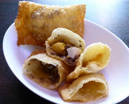 本場では塩漬け肉を使うため、塩気がきつく、脂肪分も多い「がっつり系」の料理。吉田さんは塩漬け肉を極力控え、タマネギなど野菜を倍増させてマイルドな奥行きのある味に仕上げている。これをご飯にかけて食べる。ファロッファ(キャッサバイモの粉)やビネガーソースを混ぜるのが通の食べ方とか。