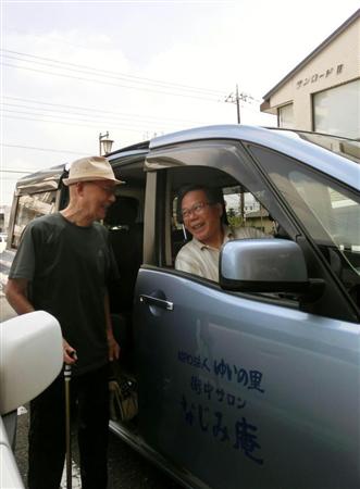 運転するのはボランティアの伊集院久志さん(73)。この日は午前8時半からなじみ庵と利用者宅を4往復し、2時間の間に分刻みで8人を送迎した。退職して1人暮らしの伊集院さんは「年も年だし、人を乗せるのは気も遣う。毎日だからスケジュールは窮屈だけど、それをこなす心地よさもある。仕事をするのと同じかな。体が弱くなったら無理だけど、参加することで人の役に立ち、喜んでもらえるのがいい」と言う。