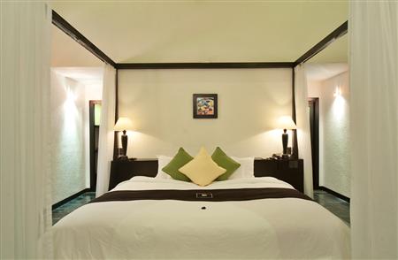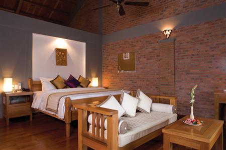 まずは市街地から40キロほど離れた内海に面した「ヴェダナ・ラグーン・リゾート&スパ」。宿泊したのはプライベートプール付きのヴィラで、内海にある水上コテージもよい雰囲気だ。