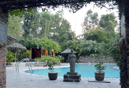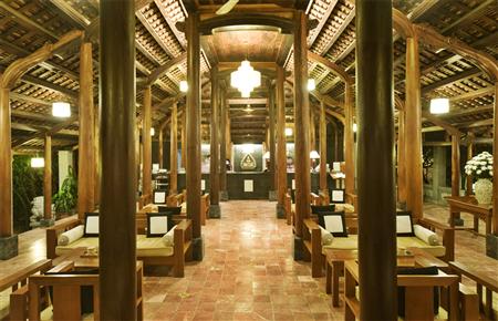 もう一軒は「ピルグリミッジ・ビレッジ・ブティック・リゾート&スパ」。同じくフエ郊外だがこちらは木々の中にコテージが点在する南国ふうのリゾートホテルだ。緑に囲まれたメインプールが心地よく、まるで自然と一体化したようだ。打たせ水が出ている奥へ進むにつれて深くなっていくのでご注意を。水深は最大180センチなので下手すると溺れる。こちらのホテルではスパを体験。ベトナム女性は働き者で、とても尽くしてくれた。