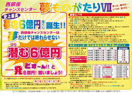 西銀座チャンスセンターのオリジナルチラシ「夢ものがたり」には、各回の特徴やトピックス、買い方のヒントなどがぎっしり書かれている。行った人だけがもらえる貴重な情報だ。写真は2012年の年末ジャンボの回。