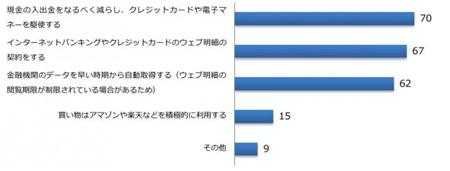 クラウド会計ソフトに興味を持った理由として、約9割の専門家が「データの自動取得で入力の時間と手間が省ける」ためと回答している。またクラウド型会計ソフト活用のポイントについて質問したところ、「現金の入出金を減らし、クレジットカードや電子マネーを駆使する」と7割の専門家が回答。そうすることにより自動で取得できる取引データが多くなり、手入力の手間を大幅に減らせるためだと考えられる。