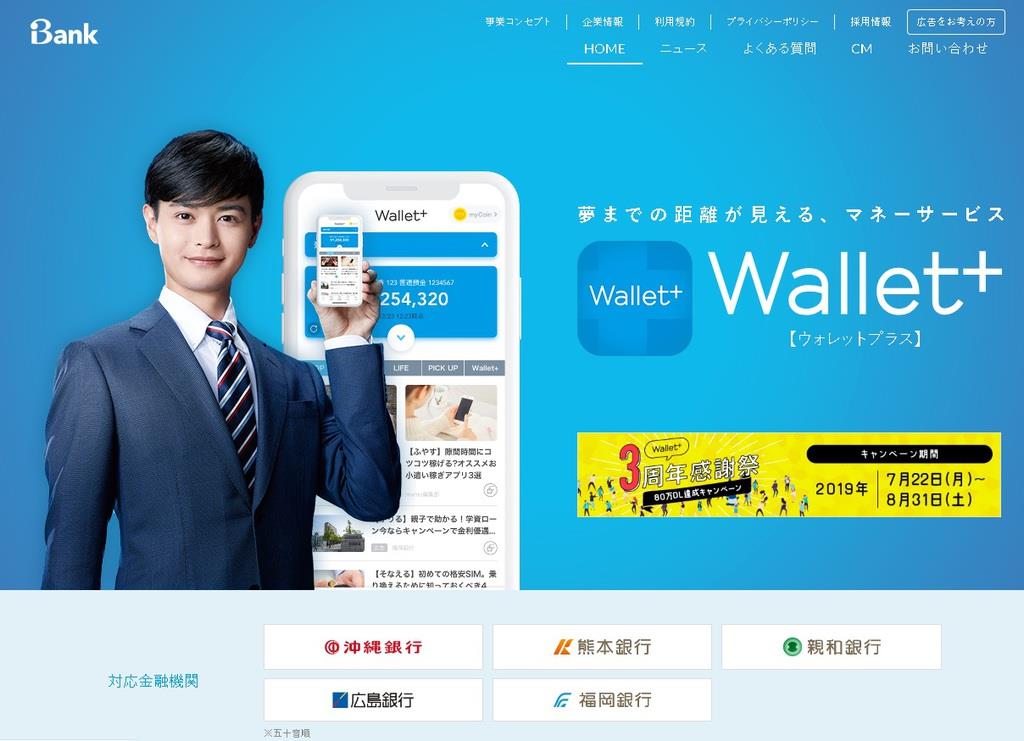 僕が個人的に面白いと思い注目しているのが、iBankマーケティングという福岡のフィンテックベンチャーが提供し、福岡銀行、親和銀行(長崎)、熊本銀行、広島銀行、沖縄銀行が対応している「Wallet+(ウォレットプラス)」というアプリです。このアプリがユニークなのは、地銀発のフィンテックアプリだという点にあります。