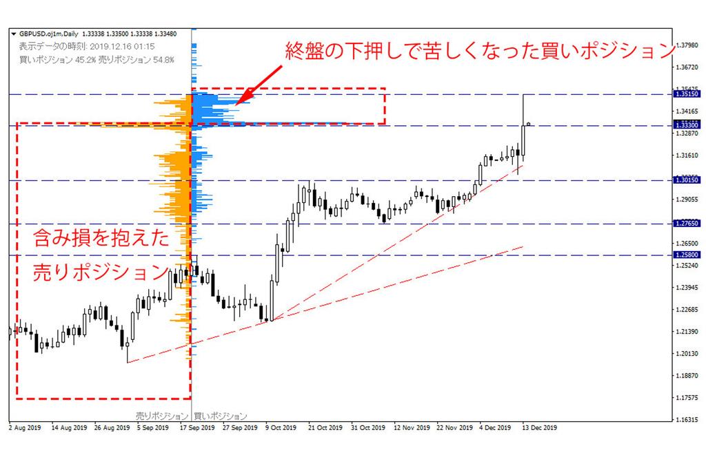 OANDAのオープンポジションを見ると、1米ドル=108.40~109.75円付近の水準で構築されたポジションが売買共に多く、価格がこの水準を上下に抜ける動きとなると、売買のいずれかのポジションが苦しくなり、損切り注文(損失を増やさないための決済注文)が増え、価格が抜けた方向に勢いづく可能性を見出すことができそうです。