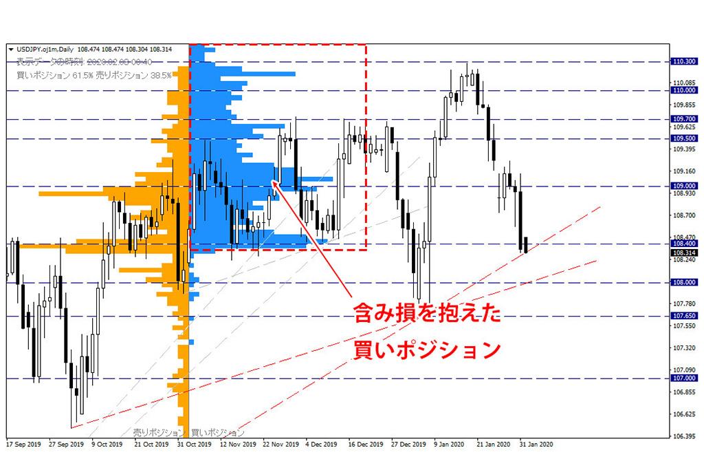 OANDAのオープンポジションを見ると、今週も前週に続き、下押しにより、損失(含み損)を抱え、苦しくなった買いポジションが目立つ状況が続いており、反発したところでは、やれやれ売り(損益分岐点に戻ってきたことによる安堵の決済の売り)が増え、上値を圧迫することが想定されるほか、安値を切り下げる動きとなると、損切りの売り注文(損失の拡大を防ぐための決済注文)が増えることが想定され、上値の重い状態が続く可能性が考えられそうです。