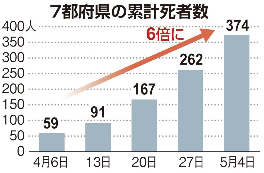 緊急事態4週間 7都府県で感染減進むも死者6倍、気の緩み警戒
