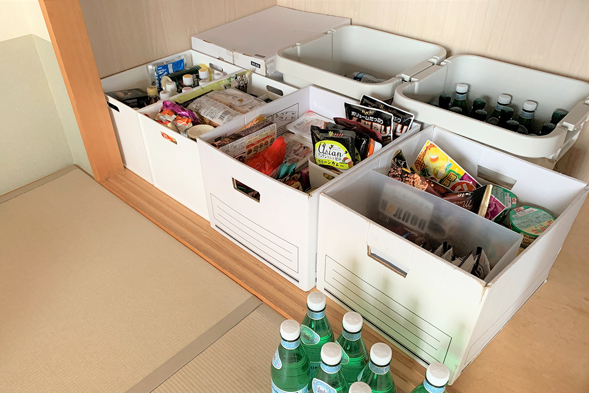 4日目~7日目は常温の食品を食べて過ごします。これらは、可能であれば、パントリーに収納し、「ローリングストック」で回していくとよいですね。ローリングストックとは、日常で消費しながら、食べた分だけ買い足し、災害時に備える方法です。パントリーが無い我が家は和室の押し入れに収納しています。