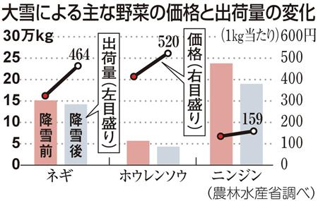 大雪再び…首都圏の野菜2~4割値上がり 積雪で出荷激減