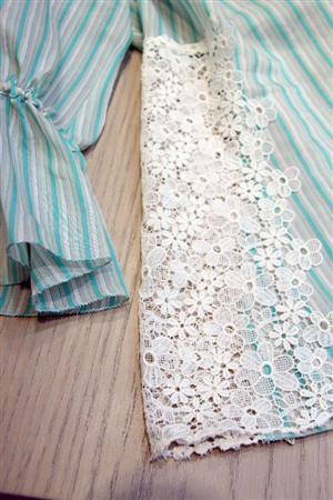 「シースルーは、2つ目の今年のトレンドです。薄手のコットンやシフォン、オーガンジーなどを使ったアイテムがたくさん出ています。ニットでもレース編みにして、シースルーにしたデザインがトレンドです」