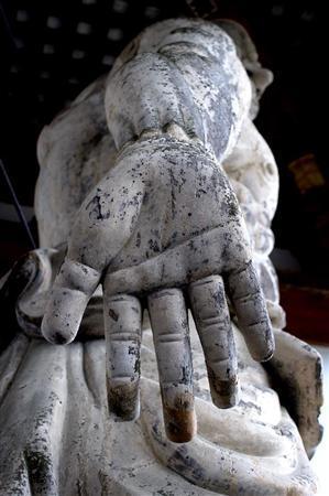 僕が初めて吉野山を訪れたのは、2009年の冬。車は雪でスリップし、人影も見えず、ひっそり静まりかえっていた。白い息を吐きながら、金峯山寺を目指す。3体の蔵王権現像は想像をはるかに越えた大きさで、凍てつく空気の向こうに、極彩色の青い顔が荘厳さを増していた。遠くから見ると優しい顔も、近づくと怒っている。両極の顔を持つ不思議な神だ。