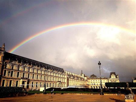 もしかしたら…、虹の端、虹の根っこが見えるかもしれない!と思った私は、近くのルーブル美術館の広場まで走り出しました。