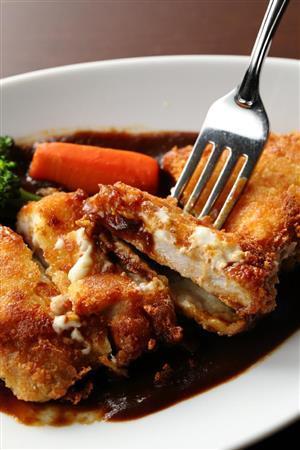 約40年前から提供している看板メニューのひとつ「豚ロース肉の熱々とろとろチーズカツレット」は、オーブンで焼いたカツのパリッとした食感と肉のしっとり感に、内部のとろけるチーズがぜいたく。