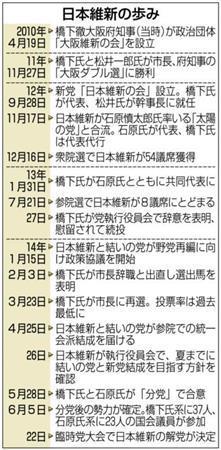 2012年9月に橋下氏が立ち上げた維新は12年11月に石原氏率いる太陽の党と合流したが、合流から約1年7カ月で事実上の幕を下ろした。(SANKEI EXPRESS)
