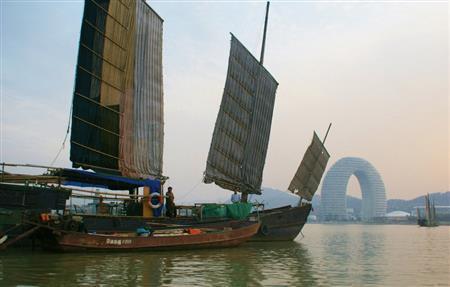 湖面に浮かび上がる輝くリング-。昨年(2013年)8月の一部開業以来、革新的なデザインで世界中を驚かせている中国・上海近郊のホテル「シェラトン湖州温泉リゾート」(湖州市)。2万平方メートルにも及ぶ温泉と、総工費約230億円という贅(ぜい)を尽くした建築…中国最先端のラグジュアリーを体感してきた。