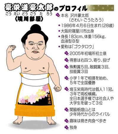 豪栄道は記者会見で、口上に盛り込んだ大和魂について「日本人の我慢強さ、潔さが込められている」と説明。今後に向け「次の目標は優勝。横綱だけじゃなく、どんな力士にも負けたくない」と抱負を述べた。師匠の境川親方(元小結両国)は「強さを過信せず、一生懸命稽古をしてきた。いつかはやってくれる男だと思う」と初優勝に期待した。