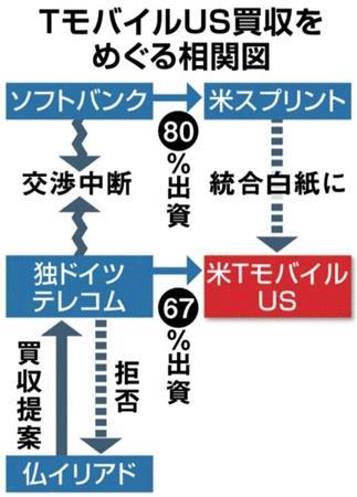 ソフトバンク傘下の米スプリントが米TモバイルUS買収の交渉を中断することで、米携帯電話市場でベライゾン・ワイヤレスとAT&Tの2強への対抗軸を作るというソフトバンクの孫正義社長(56)のもくろみは崩れた。当面、スプリントだけを足がかりに、米国でのビジネス拡大を目指す。