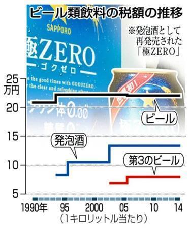 第3のビールだった「極ZERO(ゴクゼロ)」を発泡酒に変更して再発売し、記者会見するサッポロビールの尾賀真城(おが・まさき)社長。ゆがんだ税制のために、日本のビールメーカーは高い技術力と経営資源を「ビールっぽいもの」をつくることに傾けざるを得ないのが現状だ=2014年7月15日、東京都渋谷区(共同) 人気を集めてきた新ジャンル商品の「第3のビール」に巨額の追加税が発生したことで、業界が騒がしくなっている。複雑な税率区分を背景に、各メーカーが重税を回避しようと開発競争を進めてきた新ジャンル。しかし、こうした商品に経営資源を奪われれば、本来のビール造りがおろそかになりかねないと懸念する声も出ている。