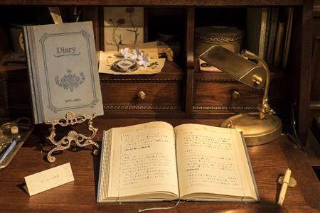 会場には背景画がアニメの世界を具現化した空間に飾られている。中でも「マーニー」が実在したのではないかと思わせる「マーニーの部屋」に置いてある日記は種田さんの作品づくりの神髄を見ることができる。