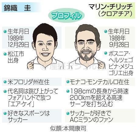 一方、錦織は得意のリターンから打ち合いに持ち込み、積極的にベースラインの内側に踏み込んで多彩なショットを駆使する。ストローク戦になるとチリッチの破壊力が落ちるため、女子シングルスで元世界ランキング8位の杉山愛さん(39)は「(錦織の)勝算は期待を込めて80%」と口にした。