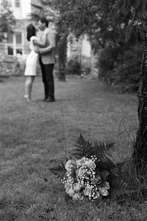 天気が良くない場合、空が真っ白に写ってしまいますので、空を思い切って切り、緑をバックにすると晴れているかのように写ります=2014年6月29日(須藤夕子さん撮影) ウエディングフォトは結婚式場やすてきなロケーションで撮るものだというイメージを持っている方が多いようです。でも、そんな固定観念を捨てると、自宅でも愛を表現した一生飾りたくなる写真を撮ることができます。家族やお友達の結婚記念に、ぜひ自宅で撮影してみてはいかがでしょう? 6月に結婚されたフランス人と日本人のハーフであるクリストフ・クリタさんと日本人のユカさんのウエディングフォトをパリのご自宅の庭で撮影させていただきました。