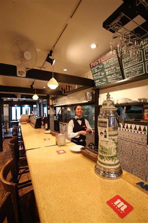 海外の京都観光ガイドブックに掲載されたこともあり、外国人観光客も増えたという。昔ながら京町家の外観にスペインのモザイクタイルが貼られた店内。料理とともに、スペインを旅する気分にさせてくれる。(文:木村郁子/撮影:恵守乾(えもり・かん)/SANKEI EXPRESS)