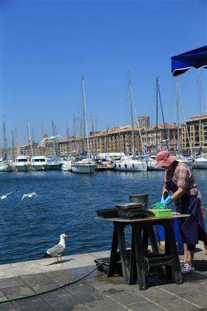 ここはマルセイユ、たくさんの船が停泊している港には、たくさんのカモメが飛び交っています。飛んでいる姿を撮るのは難易度が高いので、まずは止まっているところを一枚。海の割合に注意しながら、この場合は海の方が多い方がいいですね。背景の建物の後ろには、マルセイユのノートルダム寺院を入れて、マルセイユだということが分かるように撮りました。